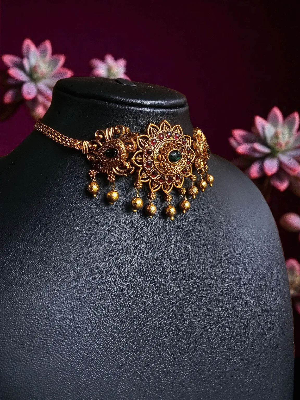 Make a bold yet graceful statement with this choker necklace set, designed to sit beautifully on the neckline and enhance your ethnic or modern look. Crafted with intricate detailing and paired with matching earrings, this set is perfect for weddings, parties, or festive occasions.
