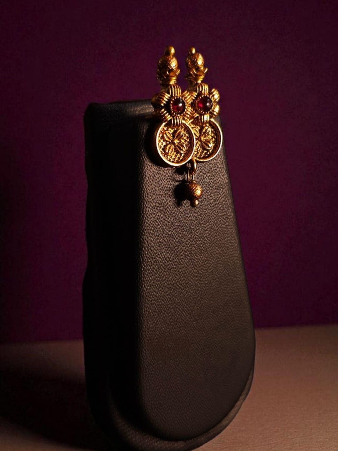 Perfect for weddings, temple functions, and cultural festivities, the heavier craftsmanship adds a grand look to any saree or bridal attire. Paired with matching earrings, this statement piece is a true symbol of heritage and elegance.